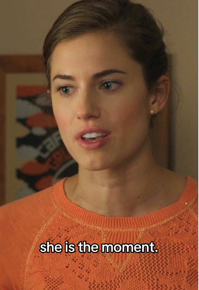 I have a few problematic faves I feel like I shouldn’t name, but maybe Marni from Girls. I just feel like when I originally watched the show, I was like, God, that woman sucks. But I knew Allison Williams was brilliant in it. And then the older I get, the more I understand Marni. She’s actually so wrapped up in herself. She can’t even help it.