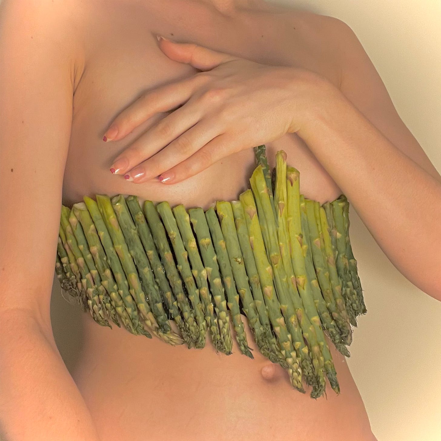 “Everything about asparagus, from its sturdy stalks to its spear-like silhouette, makes it ideal for a low-key horny battle corset (on a technical level, this vegetable is excellent for corset boning). The ancient Greeks also associated it with Aphrodite, goddess of love, due to its phallic shape; their word aspharagos literally means ‘to spring up.’ It would have been a delicacy amongst aristocracy come the middle ages, and I imagine the character who owns this armor is a bit of a flirt.”