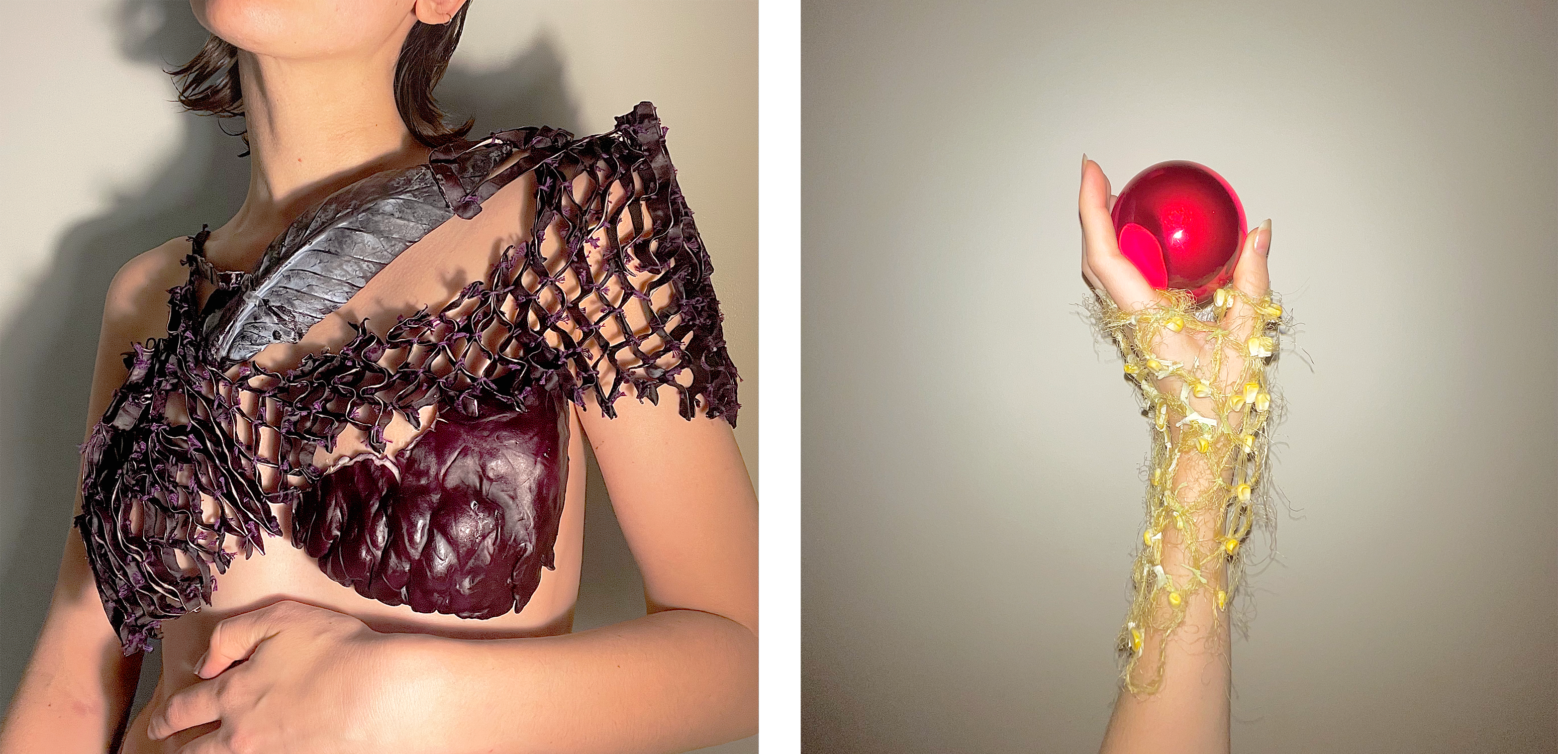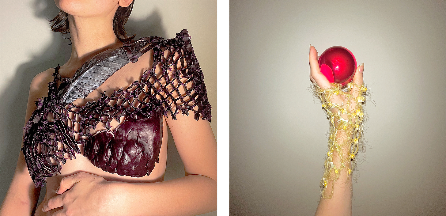 “There’s a beautiful impracticality to this gauntlet made of corn silk, which has been rolled into a fine Rumpelstiltskin-pilled gold thread of sorts and latticed together with corn kernels, which kind of feel like gems. The idea of a knight throwing down their heavy gauntlet to commit to battle is such a classic image, and the medium of corn ended up feeling both salt-of-the-earth yet dainty.”