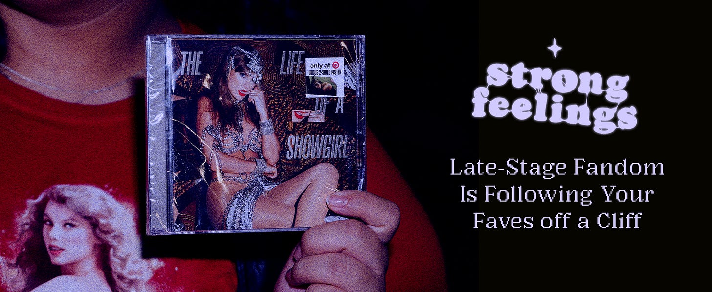 It was last week after The Life of a Showgirl proved to be her most poorly written, thematically vapid, and woefully unrelatable album (IMO) that I finally realized that it’s okay to hate Taylor’s new stuff just as much as I love her old work — no one will kick my ass IRL, and to disengage from any interest in her personal life wouldn’t diminish my connection to her earlier repertoire. No celebrity is deserving of this level of devotion, especially since these billionaires are high-key evil, but how do we know when it’s time to un-stan?