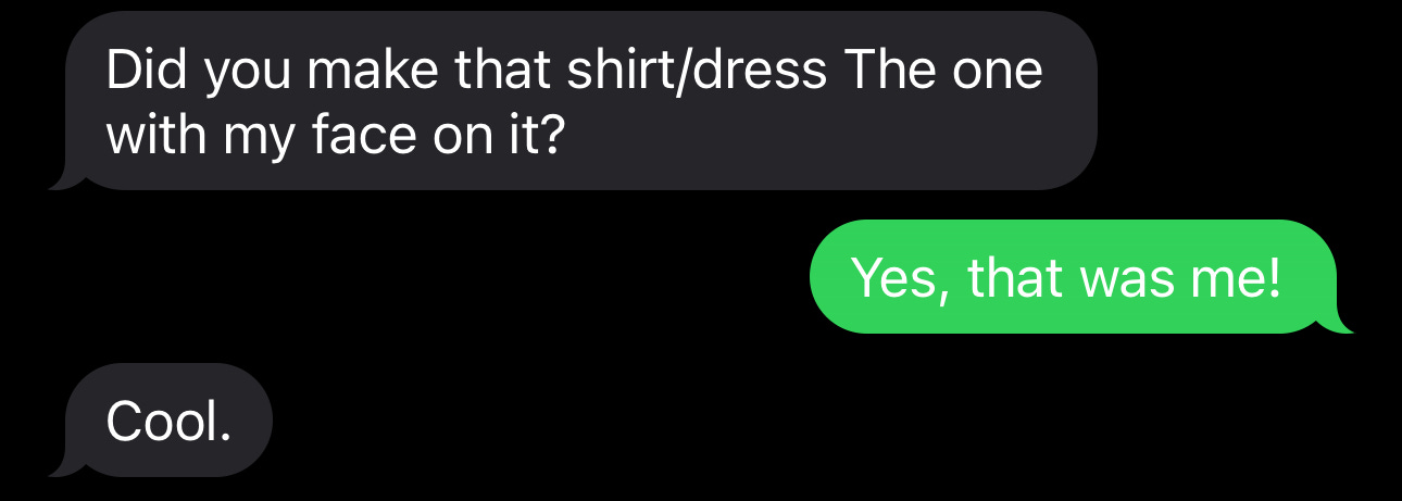mixed feelings: No. I had your flier screen-printed on a dress for a New York icons-themed party.