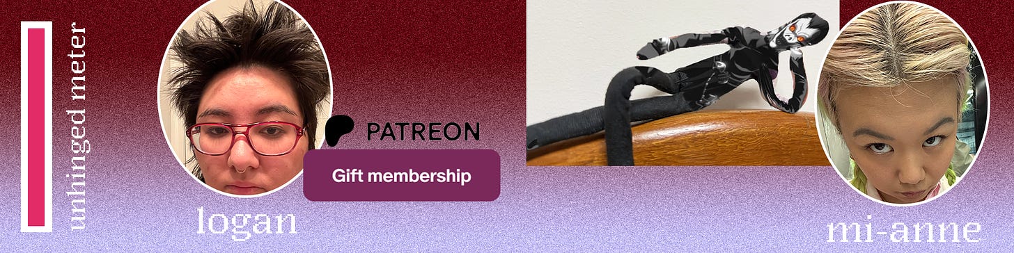 Premium Tier Patreon Membership. Listen, I spend a normal amount of money on Patreon. Like…under $30 a month. I just love exclusive nerd content, what can I say? But if we’re talking unhinged, then I wouldn’t say no to being gifted premium-tier memberships for some artists who draw nsfw fanfic. I’m deeply invested in depictions of the SuperBat ship by @umikochannart on Instagram. You’re telling me you DON’T want to see Superman and Batman kiss? Ok, sure. And we’re being specific, so please find artists that feature queer ships of all genders. Because I’m an ART ENJOYER, not a pervert. (Mostly.) — Logan Tsugita, art director at mixed feelings